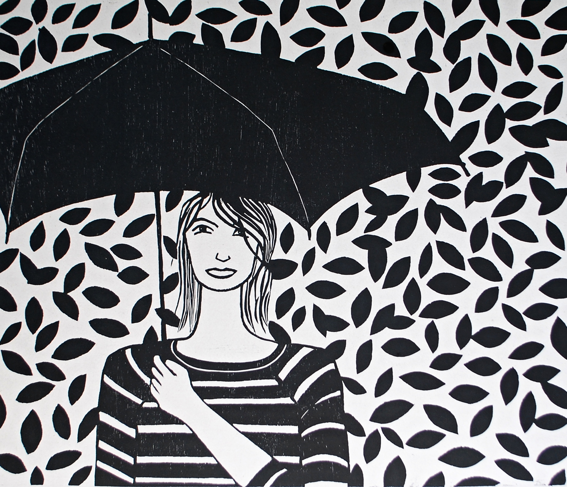 April 2, 2018November 6, 2023 | studiociboulette genevieve guadalupe autumn rain woodcut 26×30.5in 66x78cm 2016