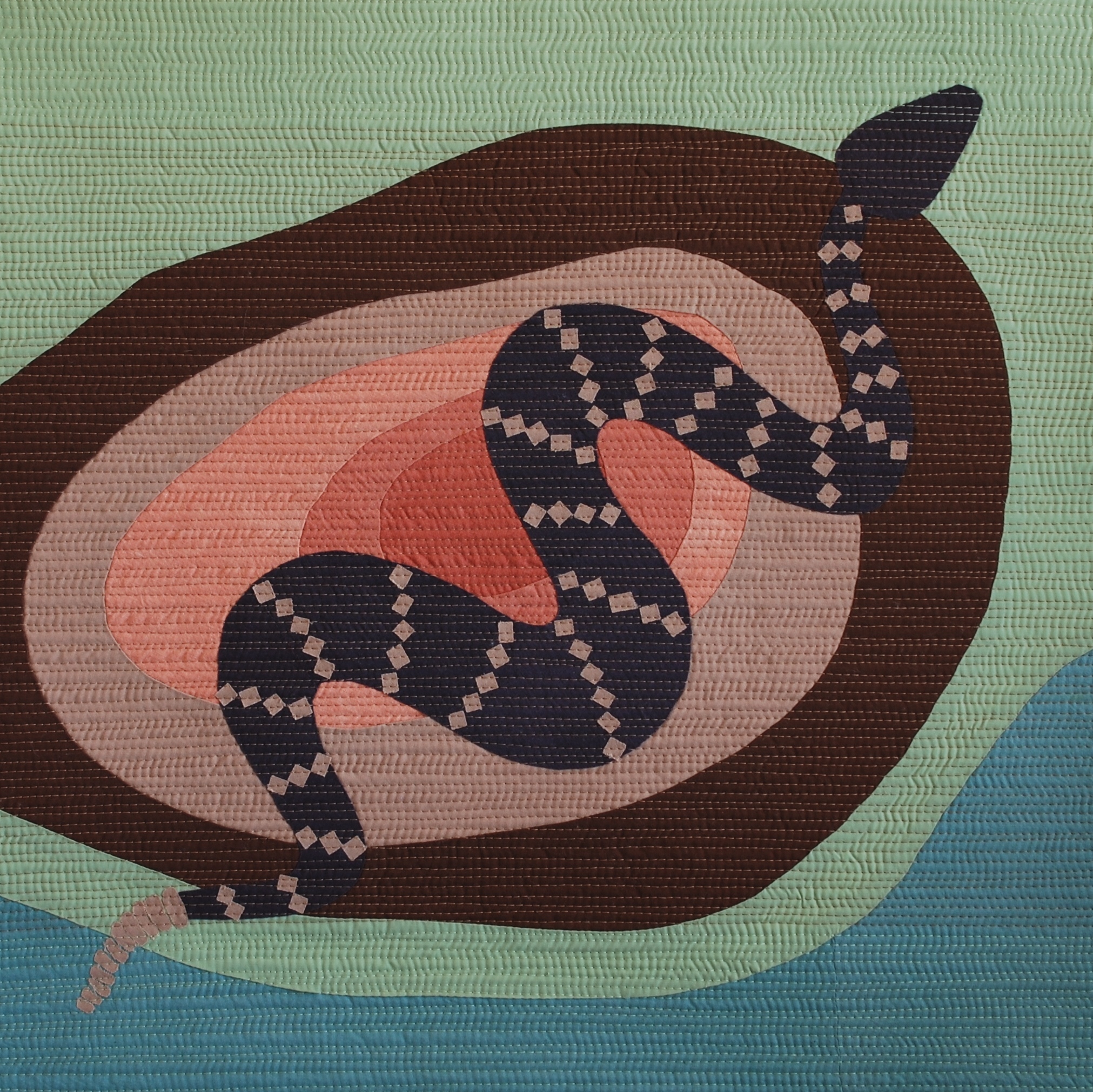 August 18, 2023November 6, 2023 | vejtheguy genevieve guadalupe black rattlesnake artquilt 15x15in 38x38cm 2023