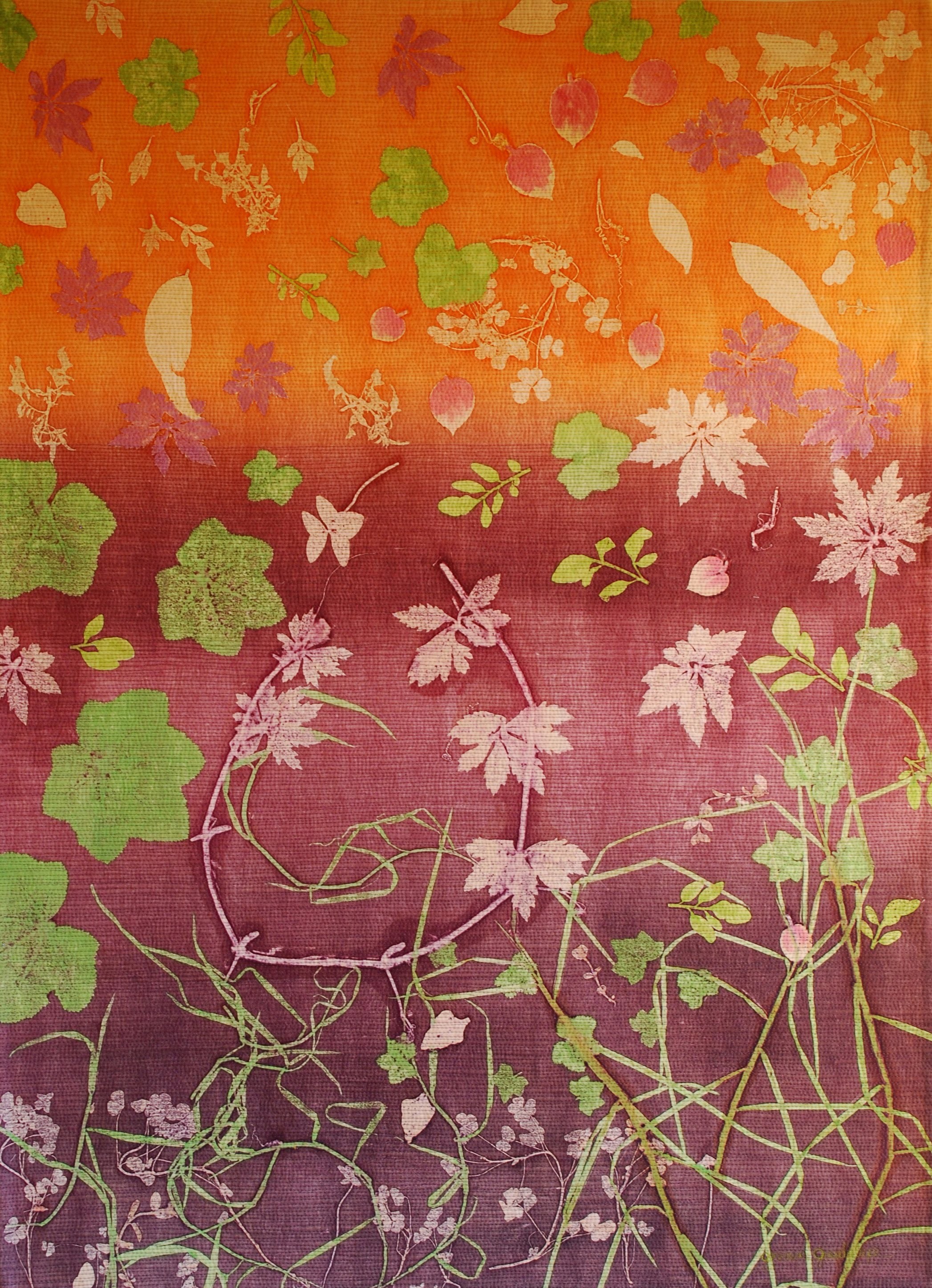 January 22, 2020November 29, 2024 | studiociboulette genevieve guadalupe joyful sunrise monoprint on fabric quilted 48×34.5in 122×87,5cm 2020