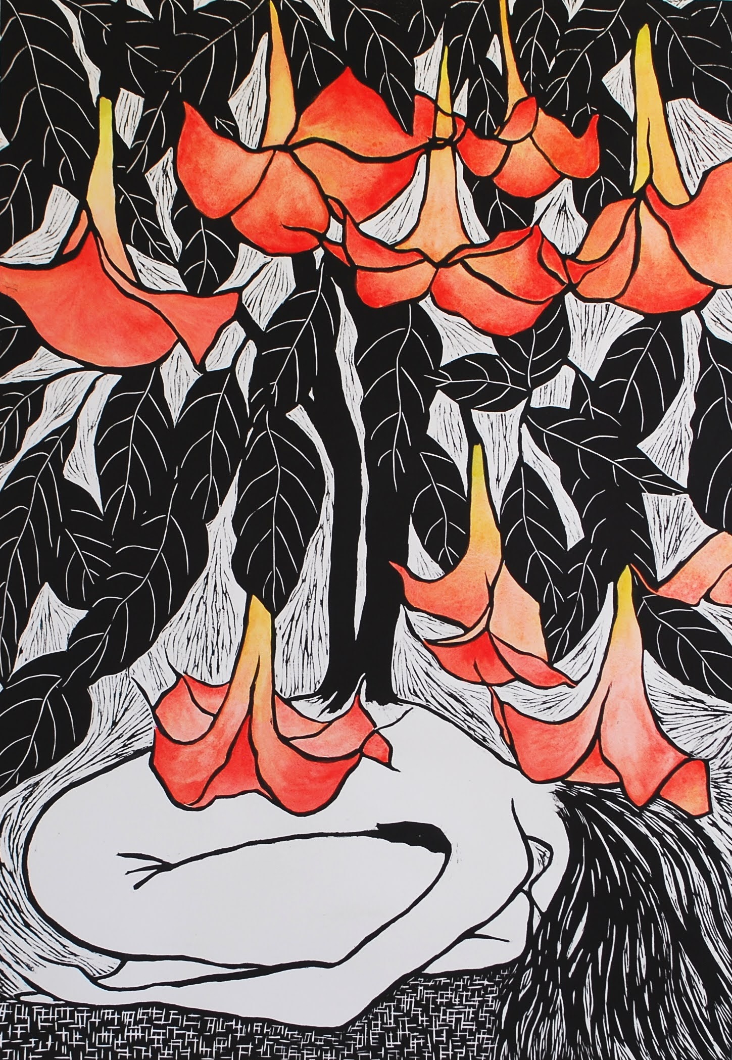 January 24, 2021November 6, 2023 | studiociboulette genevieve guadalupe floripondio woodcut 39.5×27.7in 100x70cm 2020