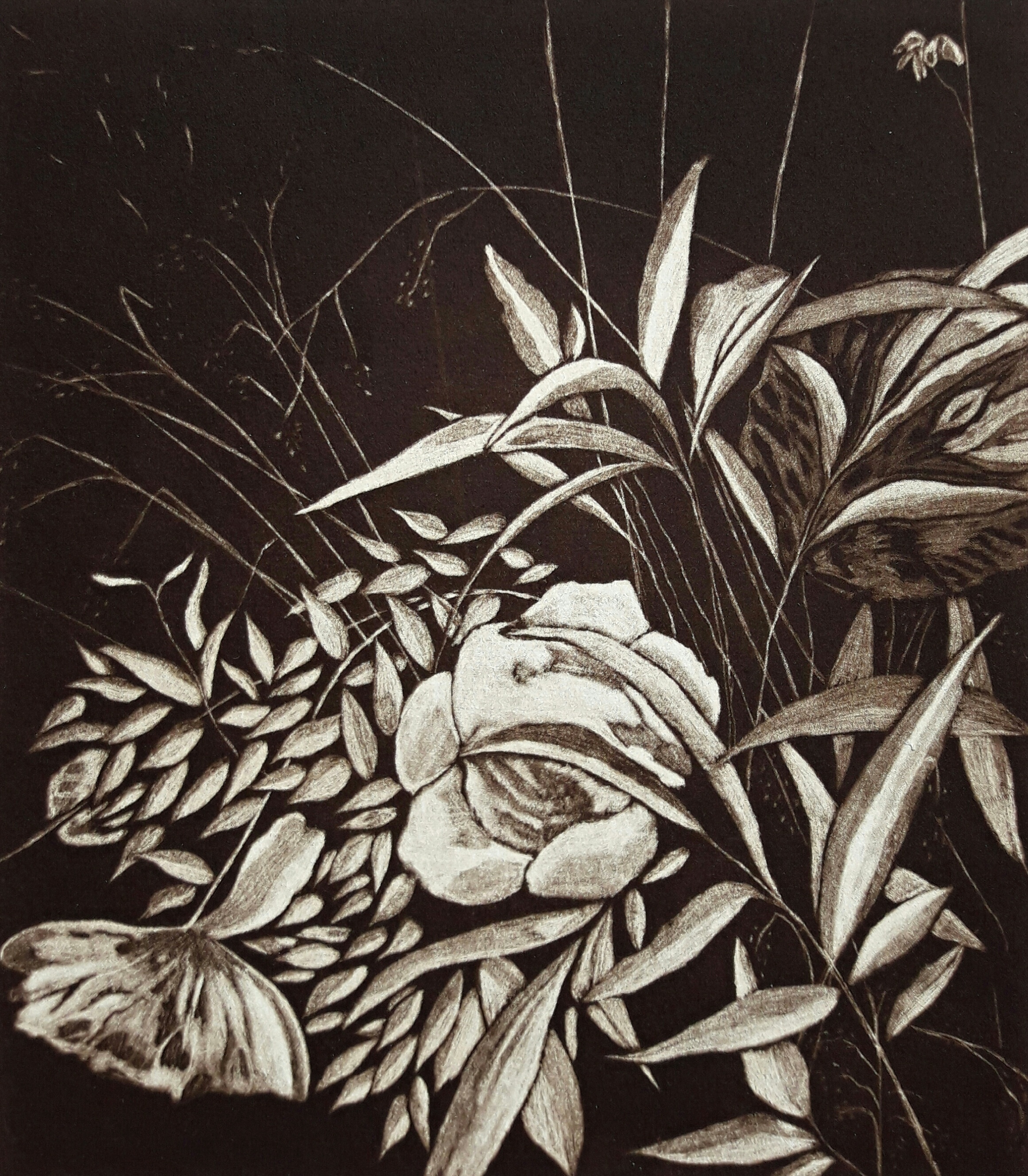 April 2, 2018November 6, 2023 | studiociboulette genevieve guadalupe le jardin de majo mezzotint 8.5×7.5in 21.5×18,5cm 2012