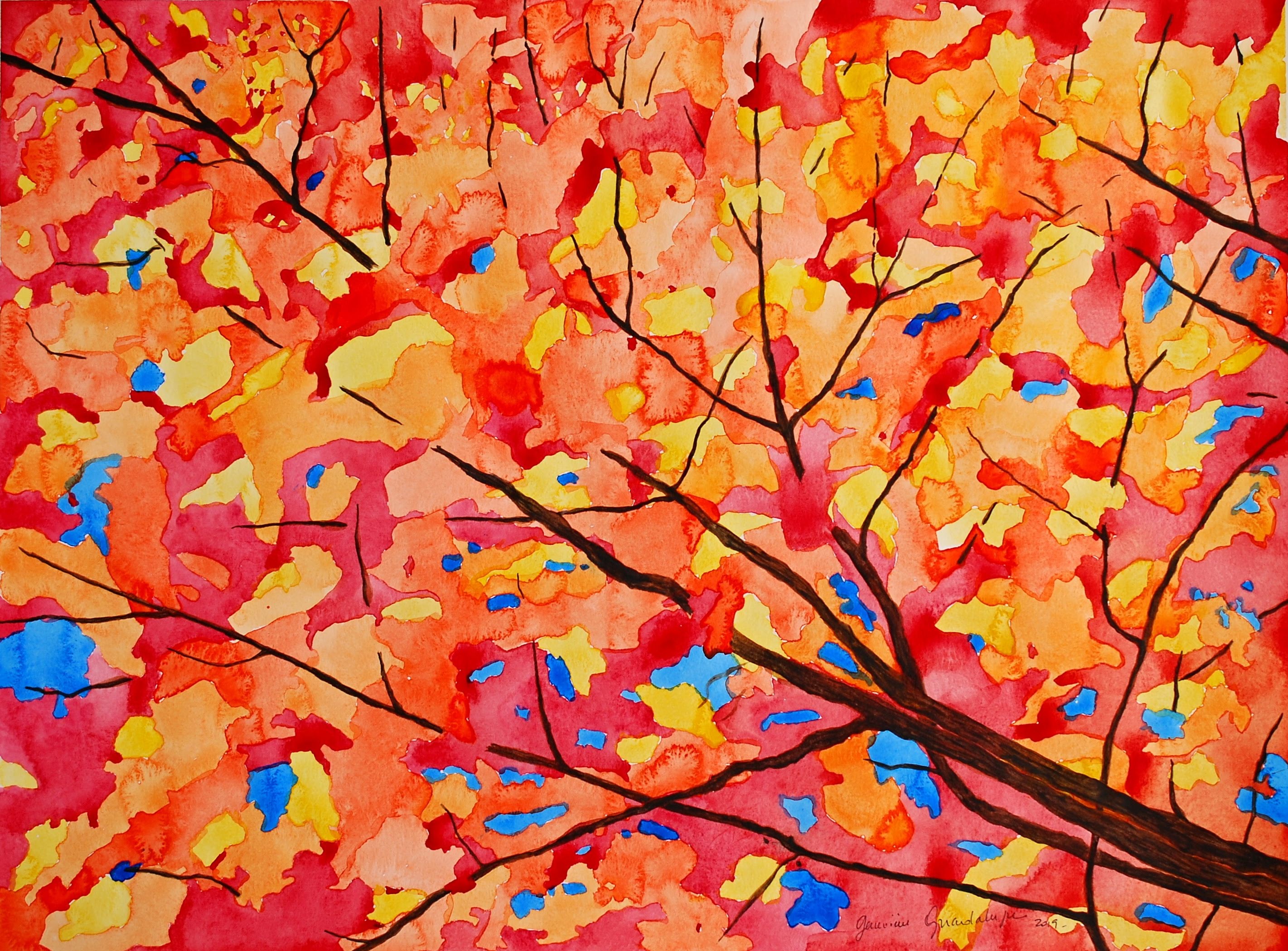 January 22, 2020July 1, 2025 | studiociboulette genevieve guadalupe skyfire: autumn’s embrace watercolor 17×23.5in 44×59,5cm 2019