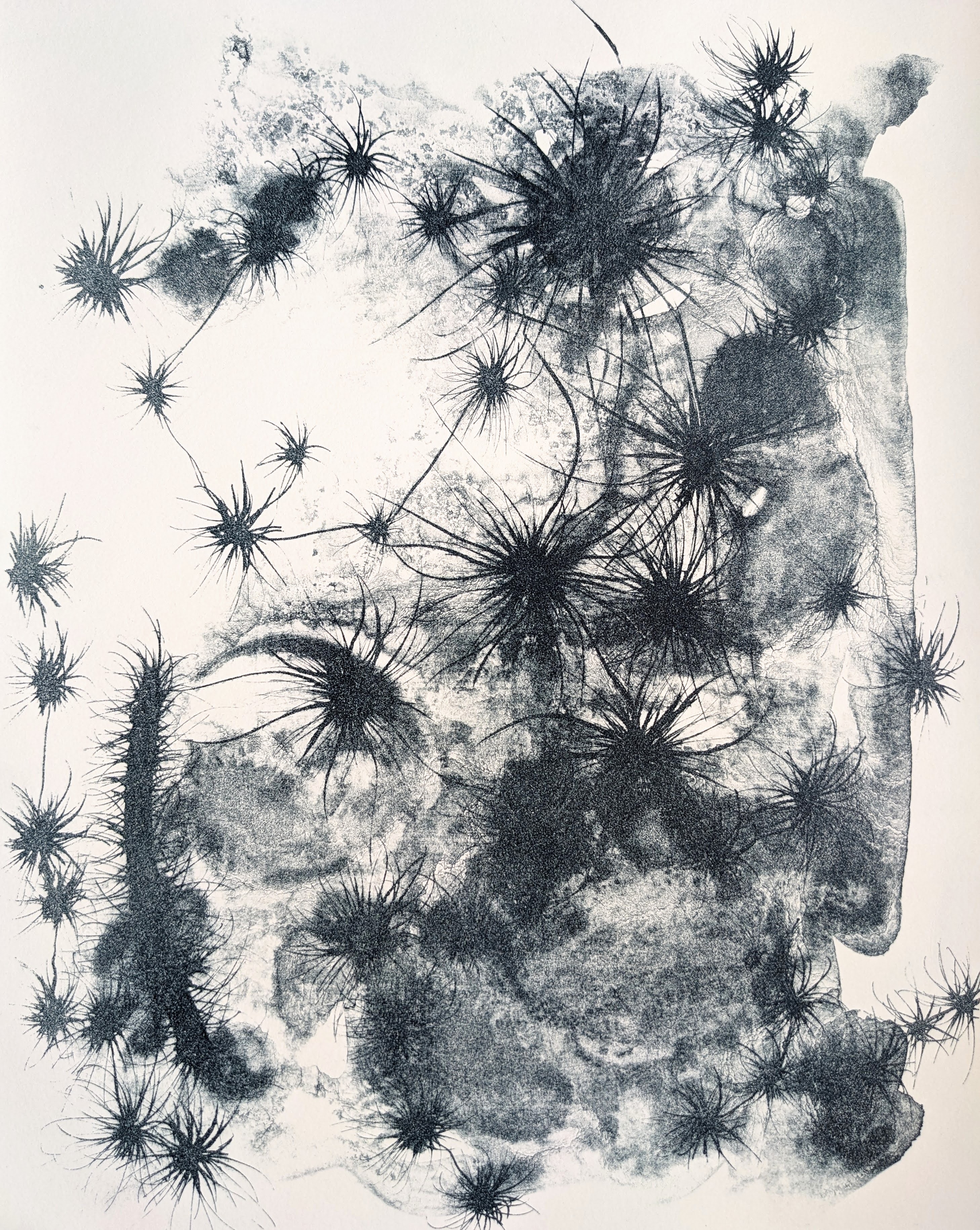 September 28, 2023November 6, 2023 | studiociboulette genevieve guadalupe lluvia de estrellas lithograph midnightblue 17.5×13.5in 44x34cm 2023