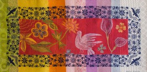 April 2, 2018November 6, 2023 | studiociboulette genevieve guadalupe palomita de la paz artquilt 22.5×44.5in 57x113cm 2015