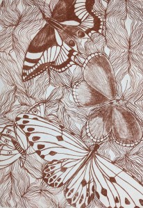 September 28, 2023November 6, 2023 | studiociboulette genevieve guadalupe papalotl lithograph sepia 13.5×9.9in 34x24cm 2023
