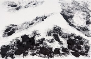 September 28, 2023November 6, 2023 | studiociboulette genevieve guadalupe popocatpetl monotype 5.5x8in 14x21cm 2020