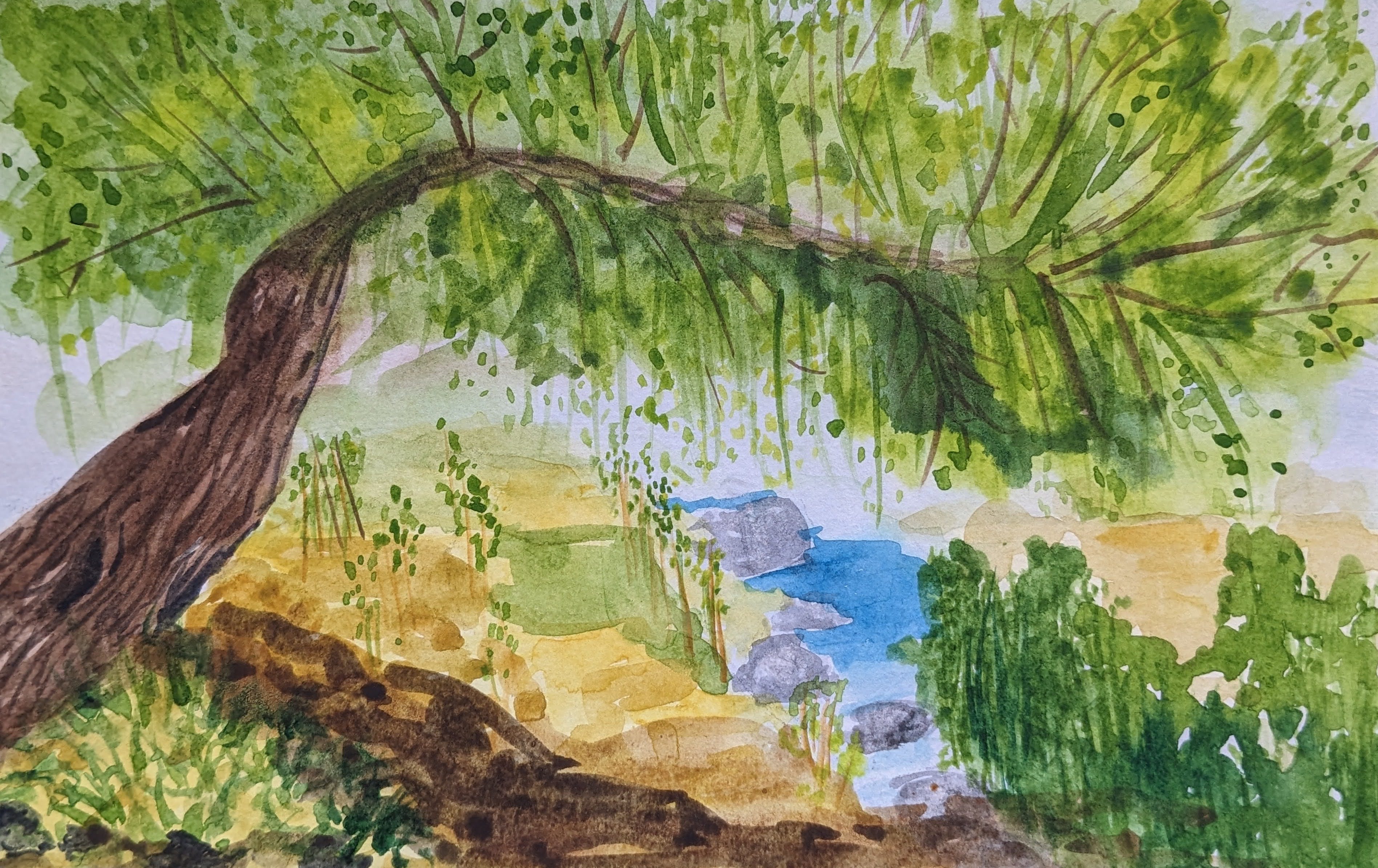 September 28, 2023November 6, 2023 | studiociboulette genevieve guadalupe river tree watercolor 5.5x9in 13,5x23cm 2018