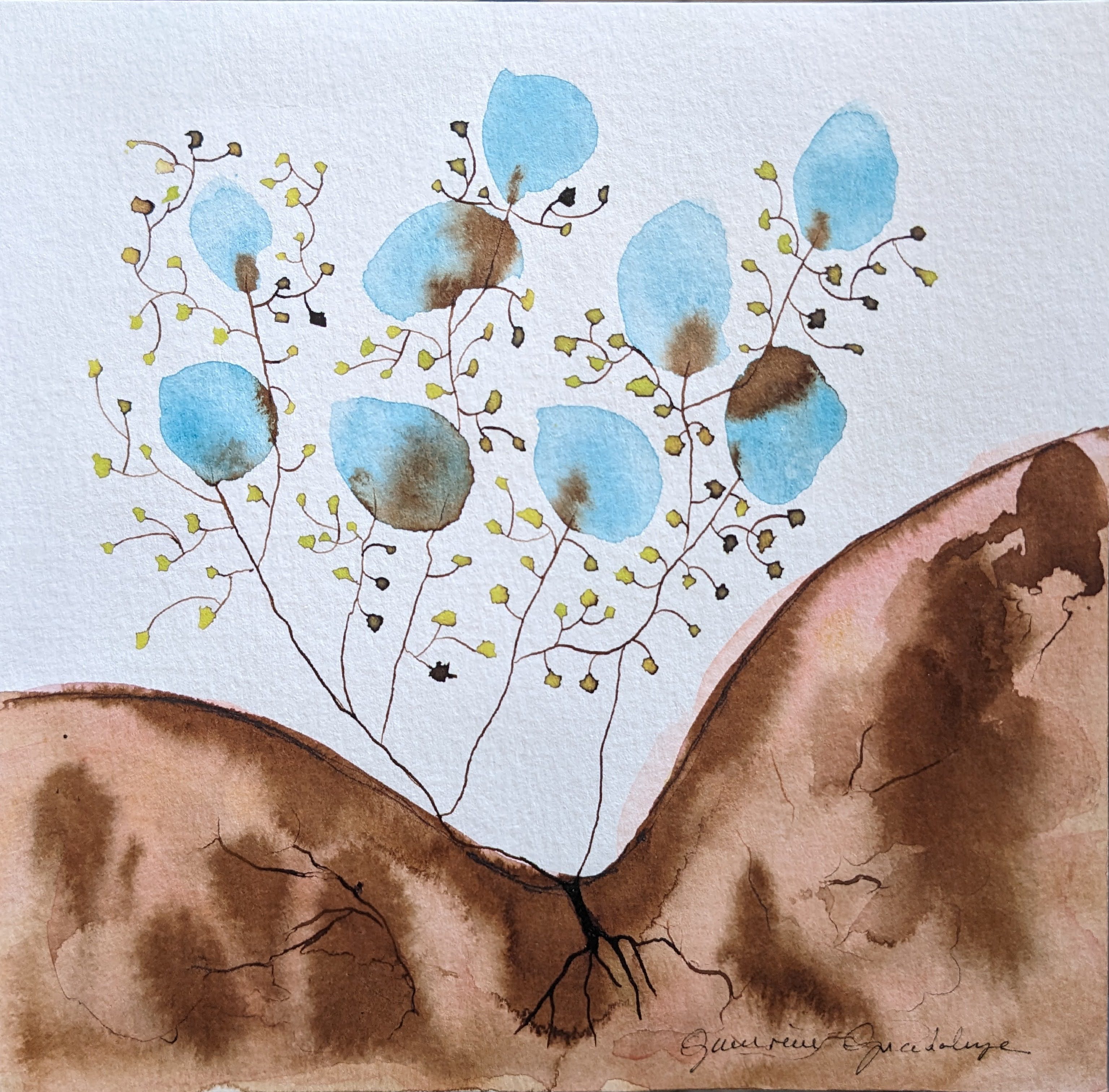 March 30, 2025March 31, 2025 | studiociboulette genevieve guadalupe roots of serendipity watercolor ink 7×7” 2025