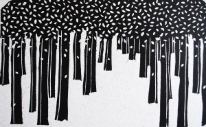 April 2, 2018November 6, 2023 | studiociboulette genevieve guadalupe snow leaves woodcut 4.5x8in 12x20cm 2016