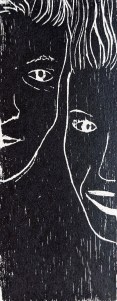 September 28, 2023November 6, 2023 | studiociboulette genevieve guadalupe tu y yo woodcut 7.5x3in 19×7,5cm 2013