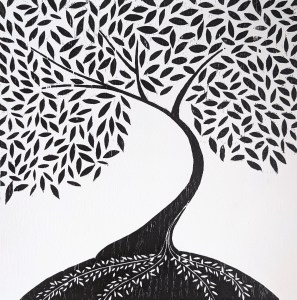 September 28, 2023November 6, 2023 | studiociboulette genevieve guadalupe world tree woodcut 16x16in 41x41cm 2020