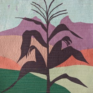 September 28, 2023November 6, 2023 | studiociboulette genevieve guadalupe zea mays artquilt 15x15in 38x38cm 2023